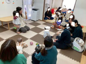 親子で触れ合いながら手遊びしたり、歌を歌ったり、